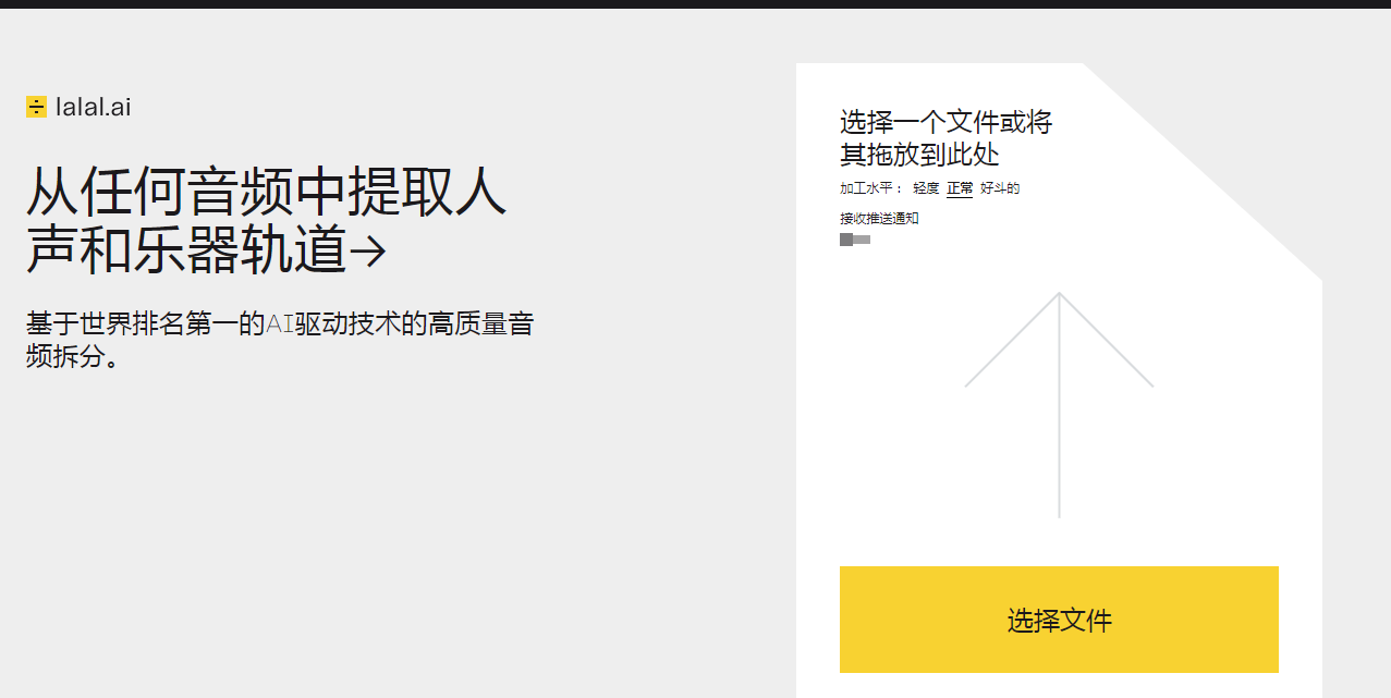 上传任何音频文件并在几秒钟内接收高质量的提取曲目,不仅不会破坏音乐的音质,而且提取出来的人声也是自然清晰。